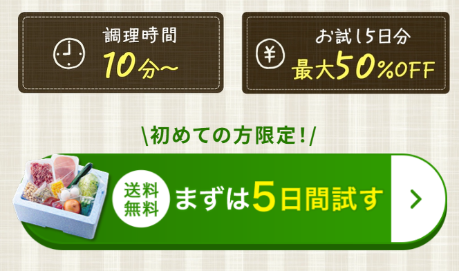 ヨシケイでは5日分のお試しセットを最大50%OFFで利用できるキャンペーンを実施しています。