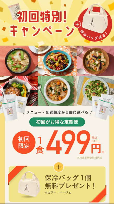 グリーンスプーンでは初回特別価格で購入できる&保冷バッグがもらえるキャンペーンを実施しています。