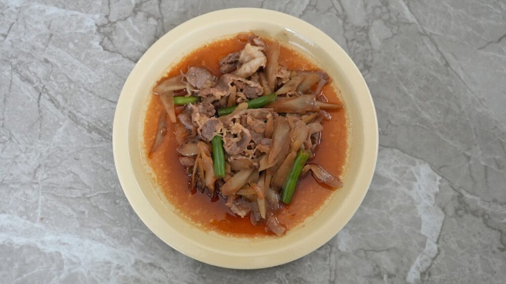 甘辛い味付けがしっかり染みていて、牛肉のジューシーさと、その旨味を吸ったごぼうの相性がかなりいいです。