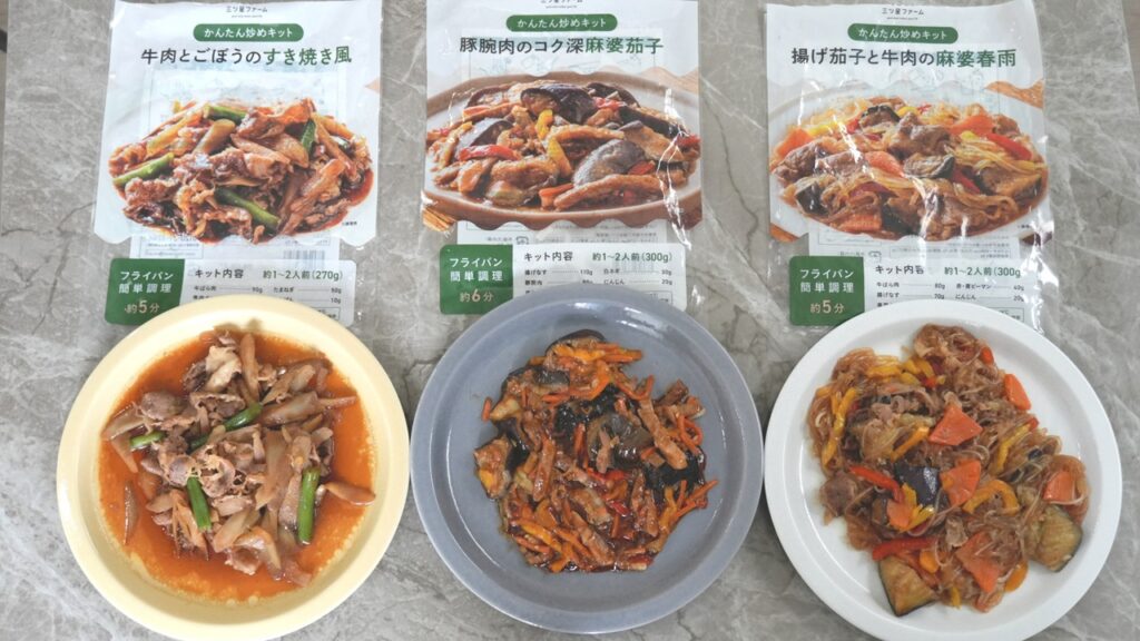 それではこのパートでは、三ツ星ファームのミールキット3品を実食レビューしていきます。